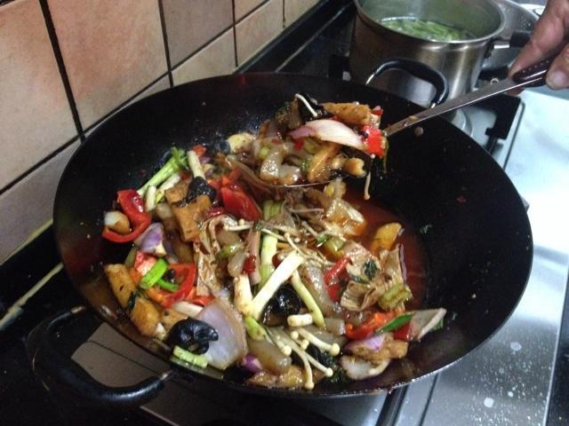 最后依次加入洋葱,红灯笼椒,金针菇。
